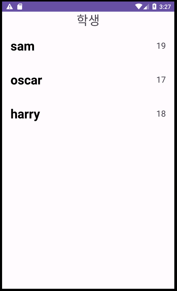 학생 클래스의 학생객체를 만들어 리사이클러뷰에 띄워주는 예제를 만들어보 겠다.