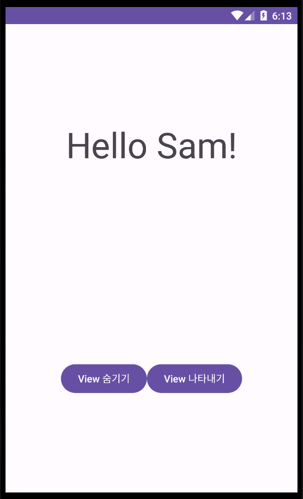 기존 액티비티 코드에서 buttonHide 쪽의 visiblity 속성을 gone으로 바꿔보자.