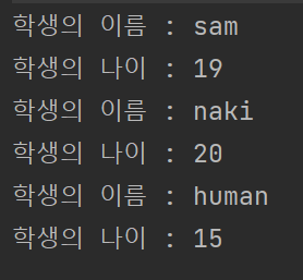 // students의 0 번째 인덱스의 값을 다시 ',' 구분자로 스플릿 한 값을 학생 객체의 생성자 매개변수로 넣어 초기화 해준다.
