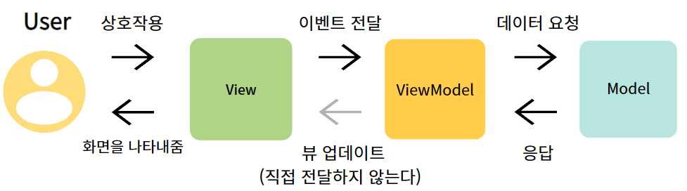 - ViewModel은 MVP 패턴의 Presenter와 동일한 역할을 한다