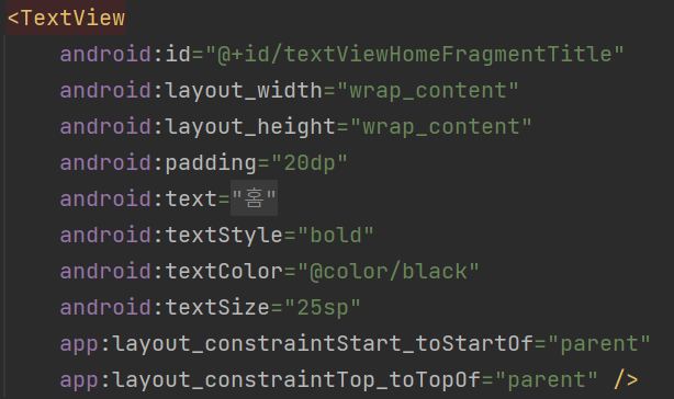 물론 textStyle,textColor 등 textView 속성 뿐만이 아니라 view의 여러가지 속성들도 파일에 작성할 수 있다.