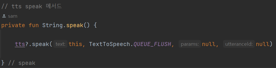 speak 메서드를 통해서 String.speak()로 바로 speak 메서드를 정의하고 호출해서 이용 하였다.