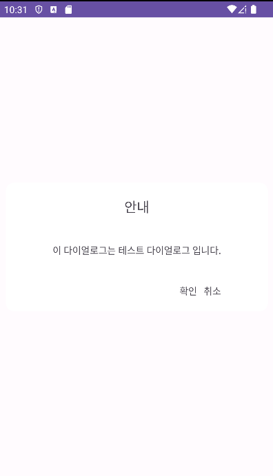 android:text="이 다이얼로그는 테스트 다이얼로그 입니다."