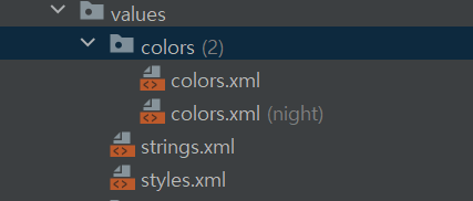 아래 이미지처럼 colos.xml(night) 파일이 만들어진다.