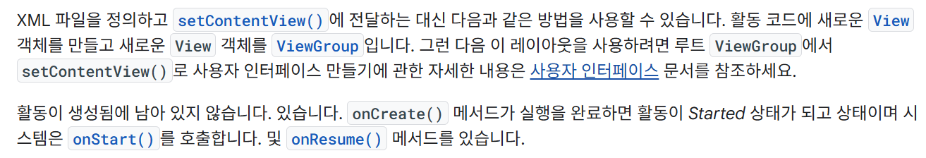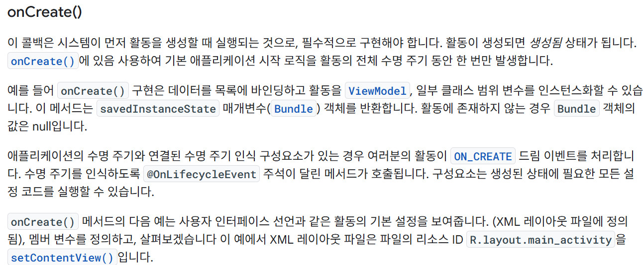 그중에서 onCreate에 관한 공식문서 내용을 보면