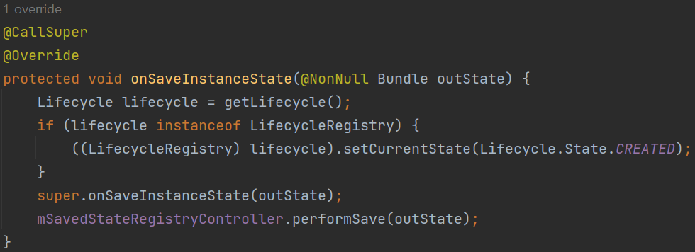 만약 이전에 Activity가 존재하지 않았다면, 즉 이번이 처음 생성하는 것이라면 savedInstanceState는 null이 들어있다.