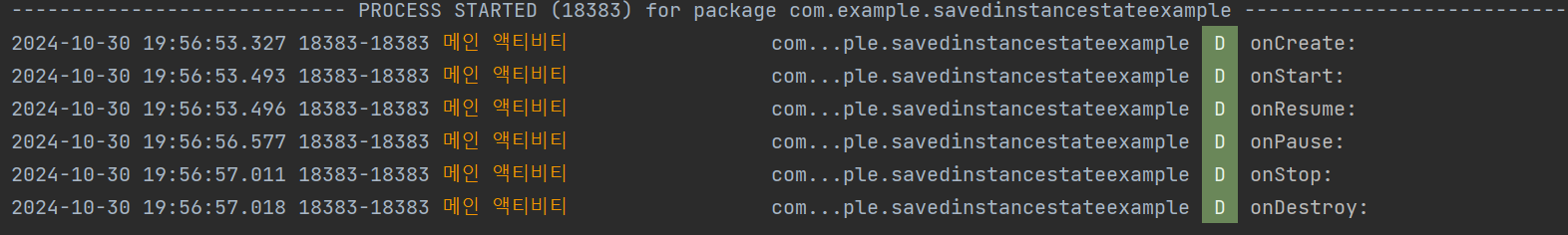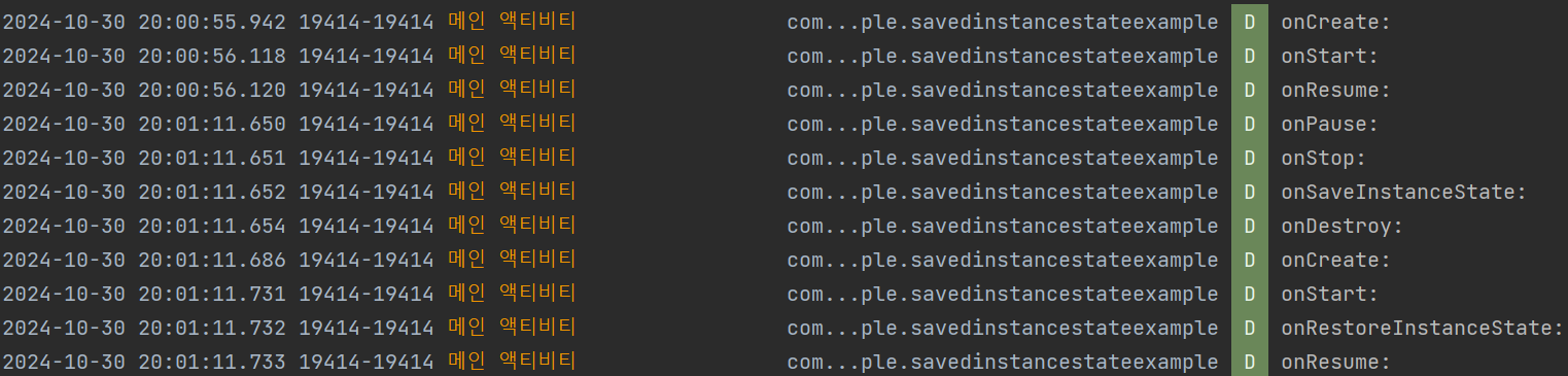 실제로 생명주기와 onSaveInstanceState() , onRestoreInstanceState() 에 로그를 찍고 확인해 보면