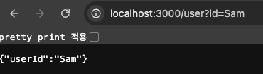 위 코드를 작성 후 url에 데이터를 담아서 실행시키게 되면