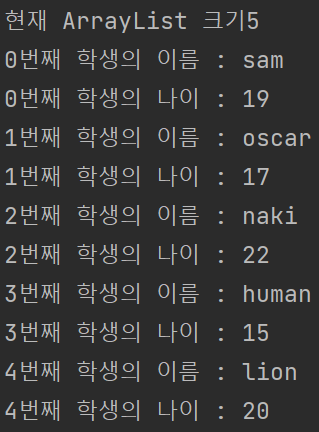 System.out.println(i+"번째 학생의 나이 : " + studentArrayList.get(i).age);