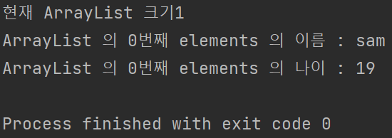 System.out.println("ArrayList 의 0번째 elements 의 나이 : " + studentArrayList.get(0).age);