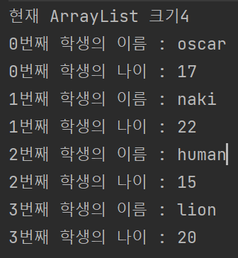 System.out.println("현재 ArrayList 크기" + studentArrayList.size());